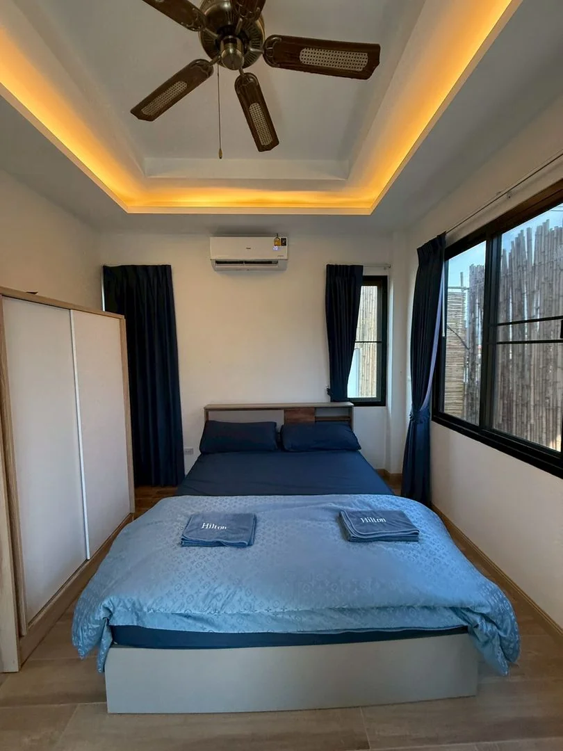 - ห้องนอน 3 – เตียงขนาด 6 ฟุต 1 เตียง (ห้องน้ำในตัว)