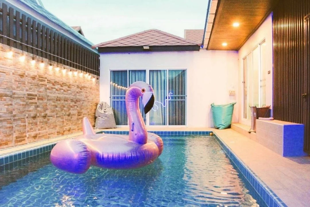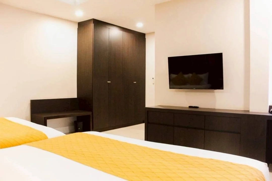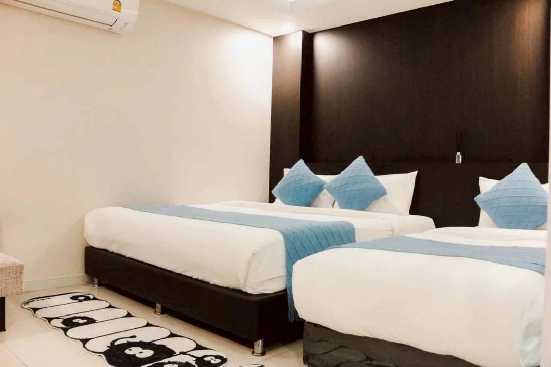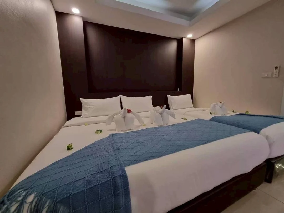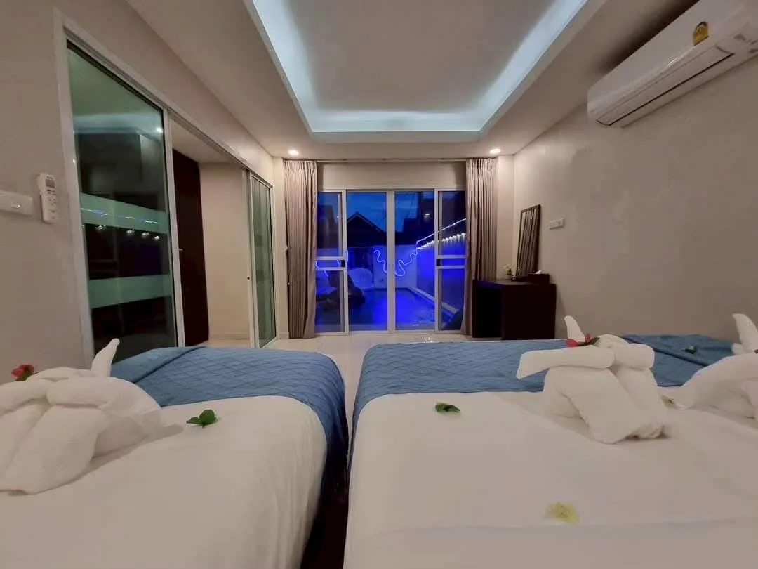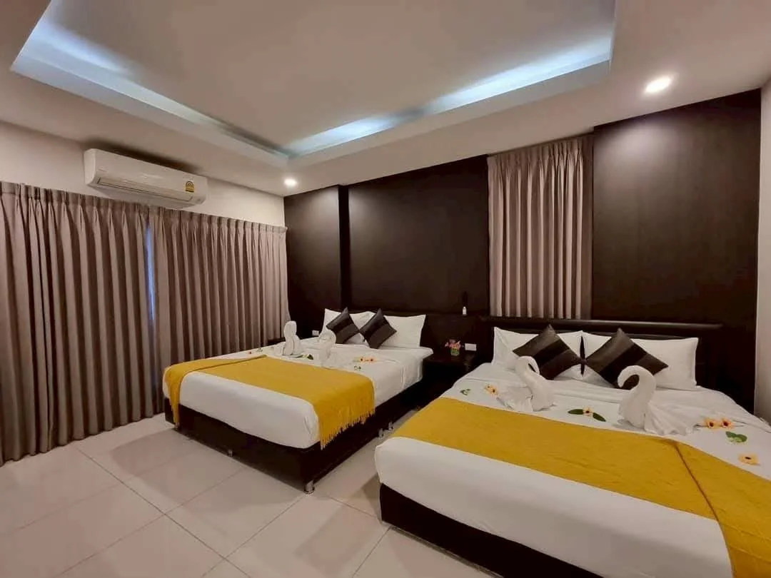 – ห้องนอน 1 = เตียง 5 ฟุต 2 เตียง ห้องน้ำในตัว