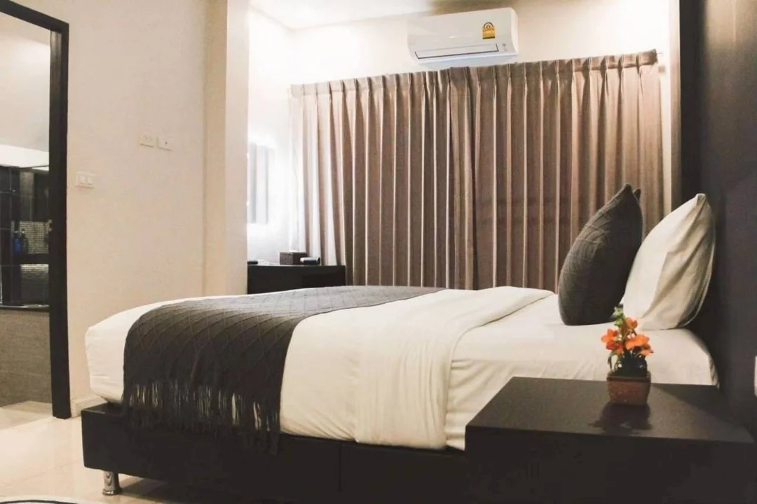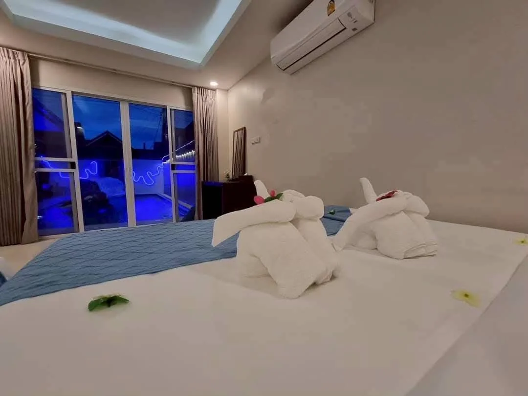 – ห้องนอน 2 = เตียง 5 ฟุต มีห้องน้ำในตัว