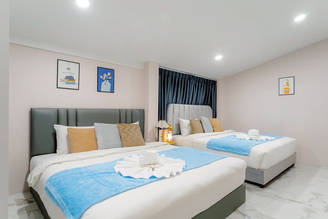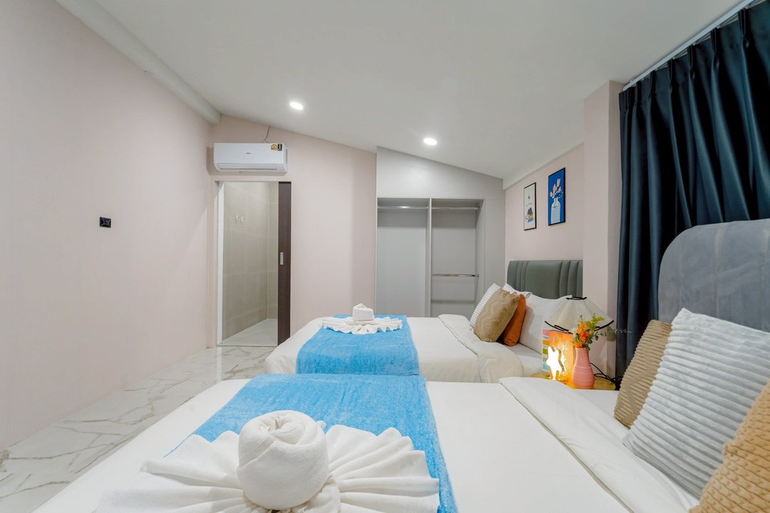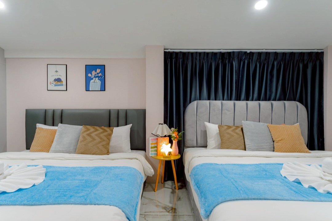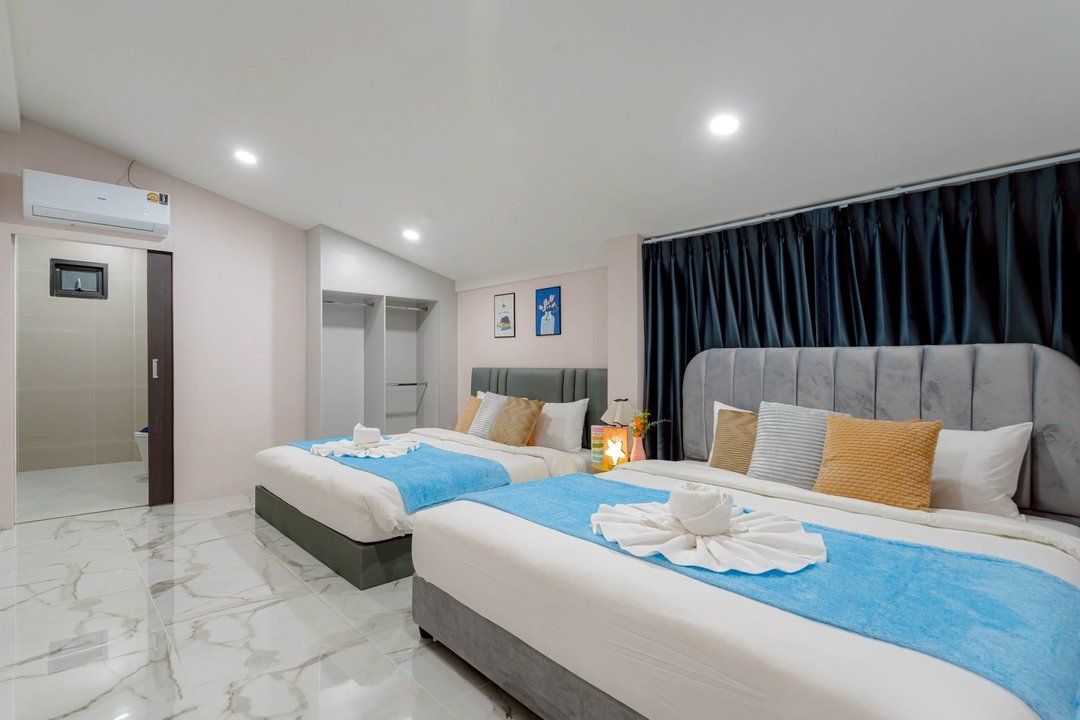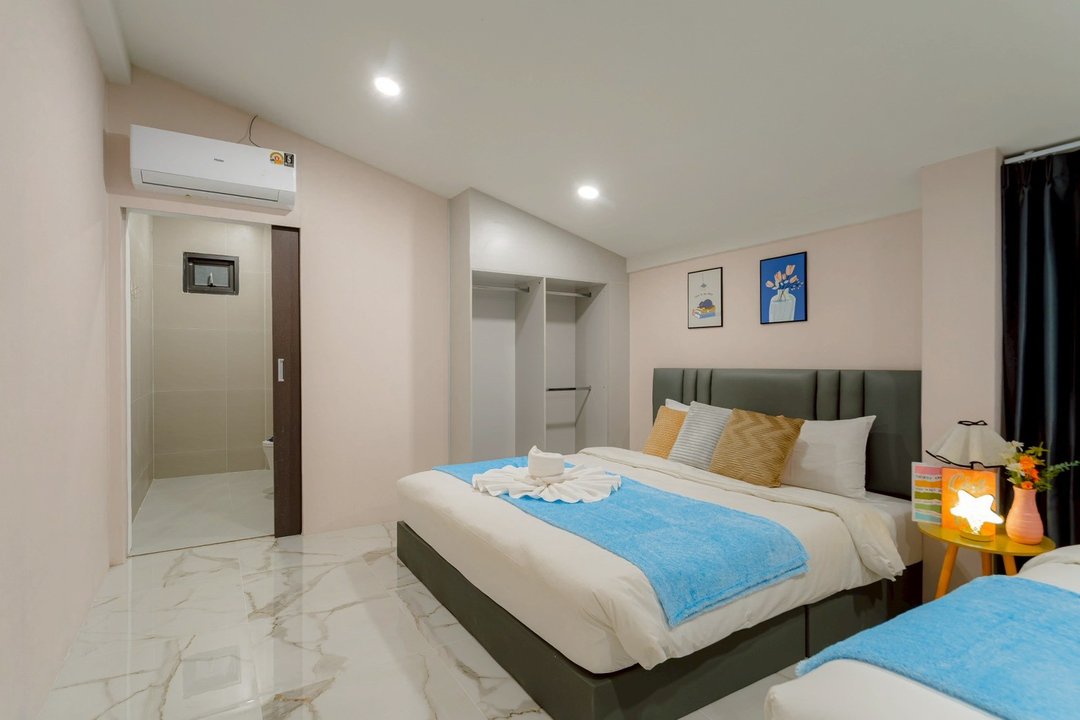 - -ห้องที่ 1 เตียง 6 ฟุต 2 เตียง (ห้องน้ำในตัว)