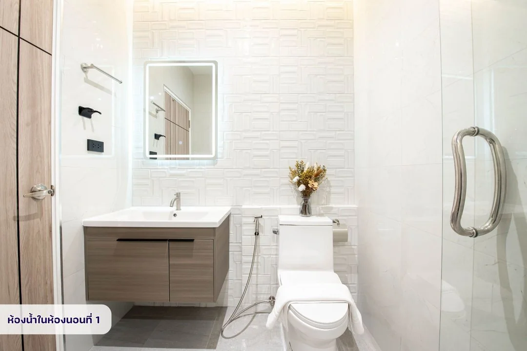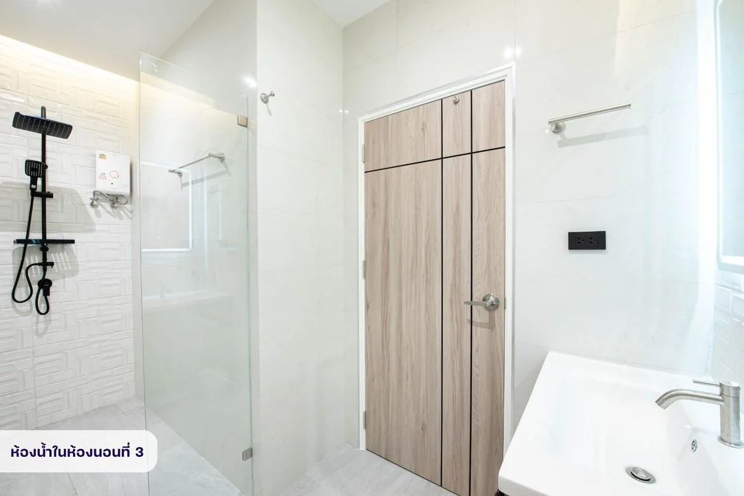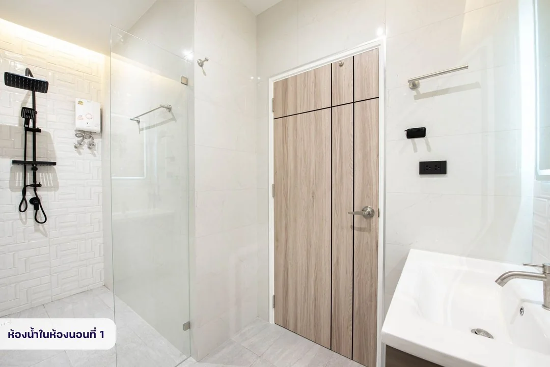 - มีเครื่องทำน้ำอุ่น ทุกห้องน้ำ