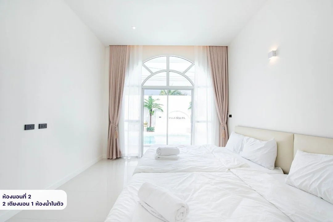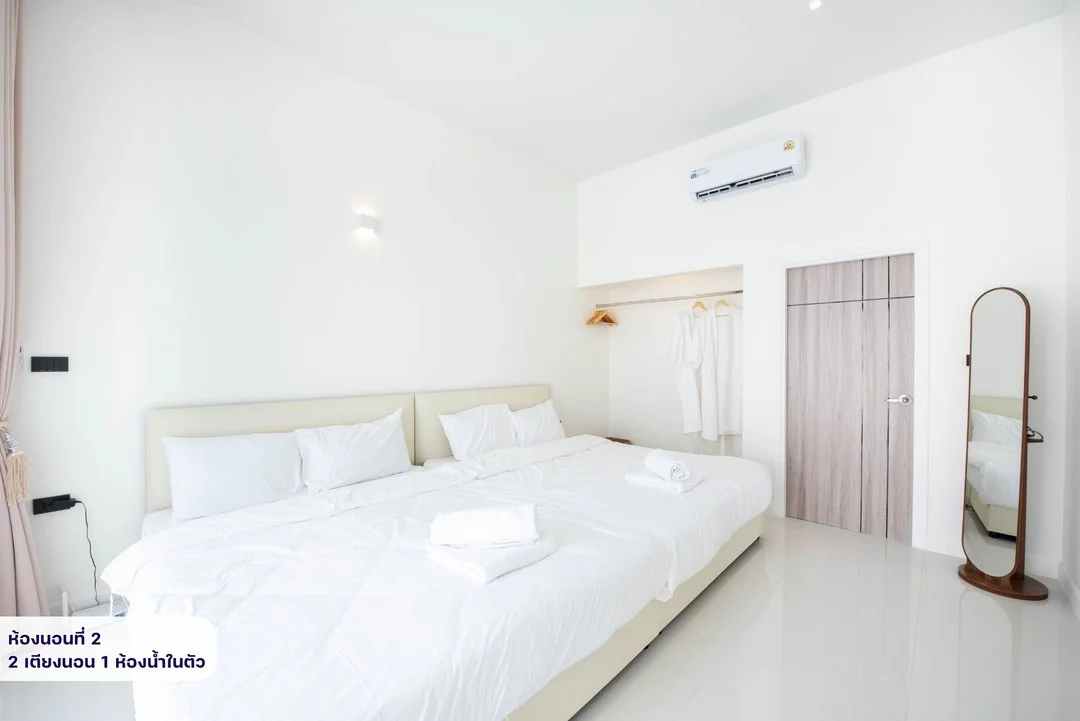 - -ห้องนอนที่ 2 มีเตียง 5 ฟุต 2 เตียง ห้องน้ำในตัว