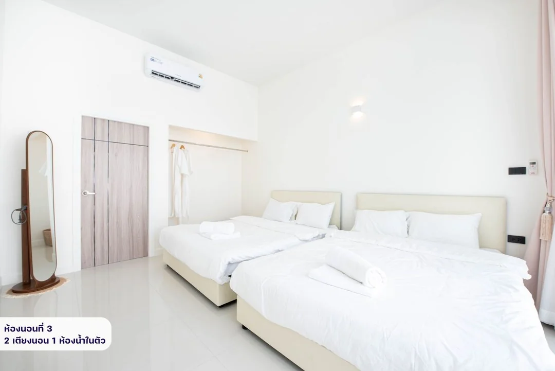 - -ห้องนอนที่ 3 มีเตียง 5 ฟุต 2 เตียง ห้องน้ำในตัว