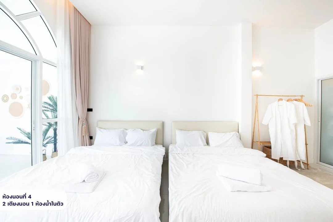 - -ห้องนอนที่ 4 (Master bedroom) มีเตียง 5 ฟุต 2 เตียง ห้องน้ำในตัว