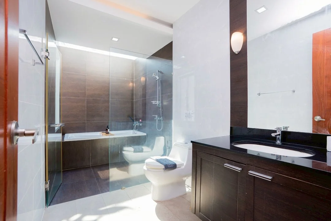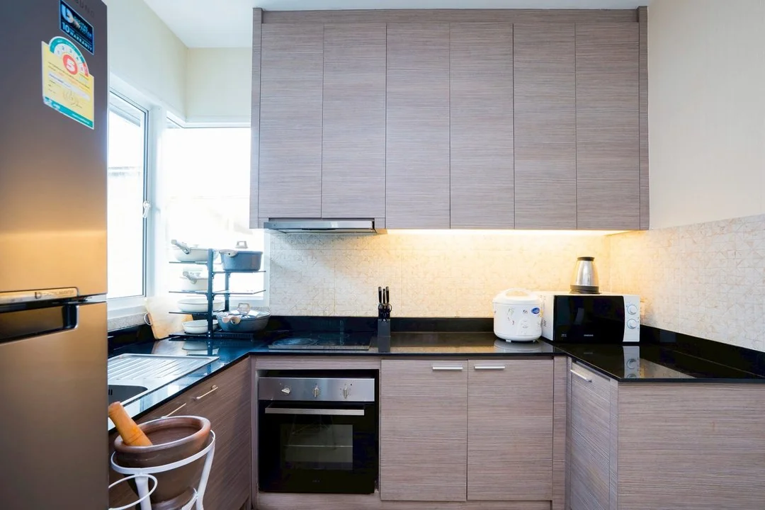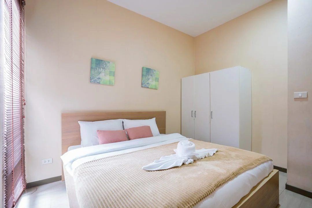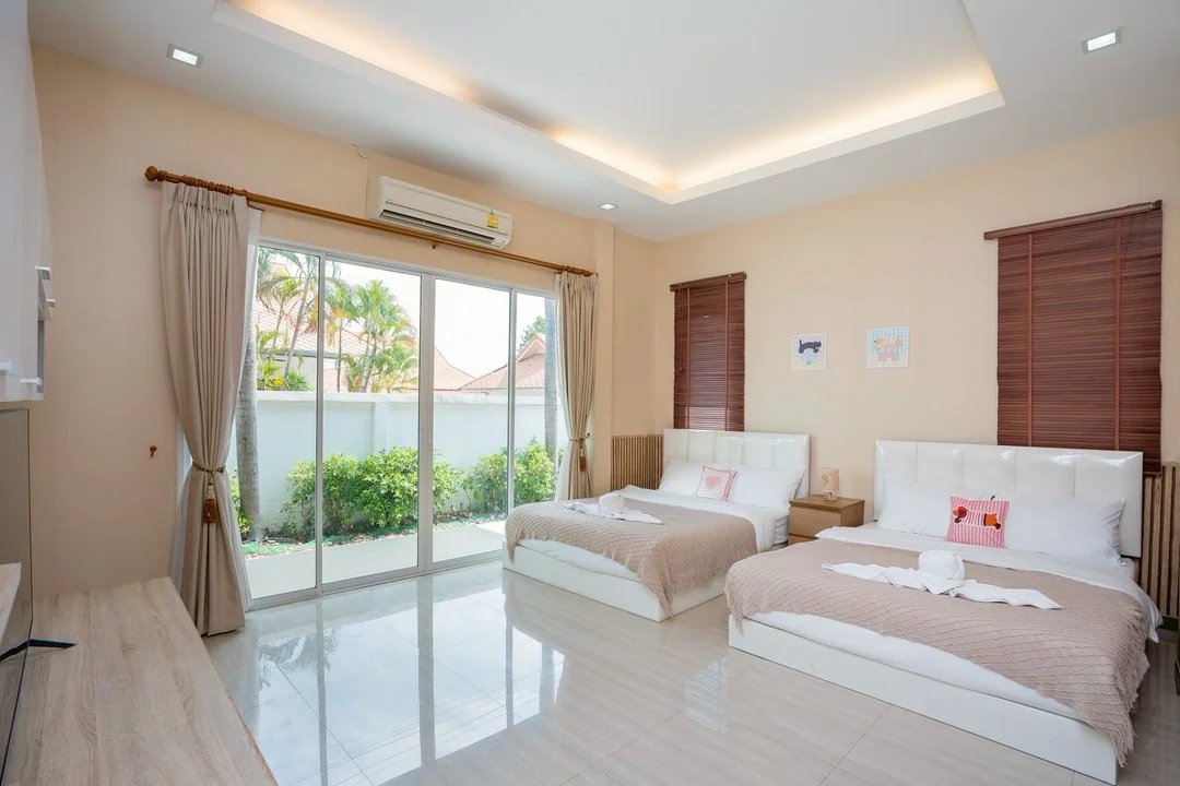 - -ห้องนอนที่ 1 มีเตียง 5 ฟุต 2 เตียง ห้องน้ำในตัว